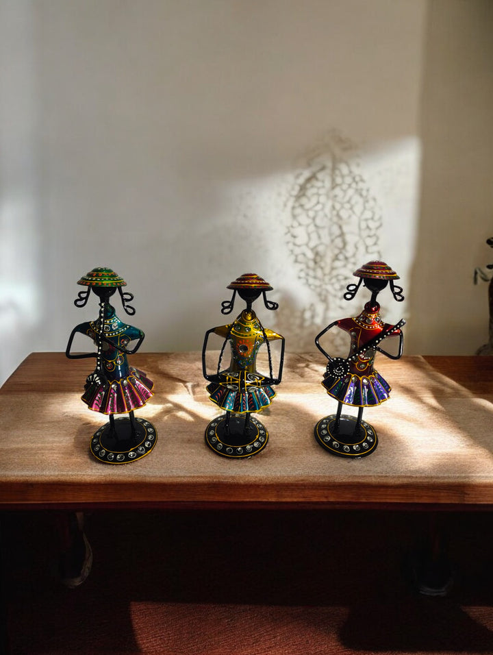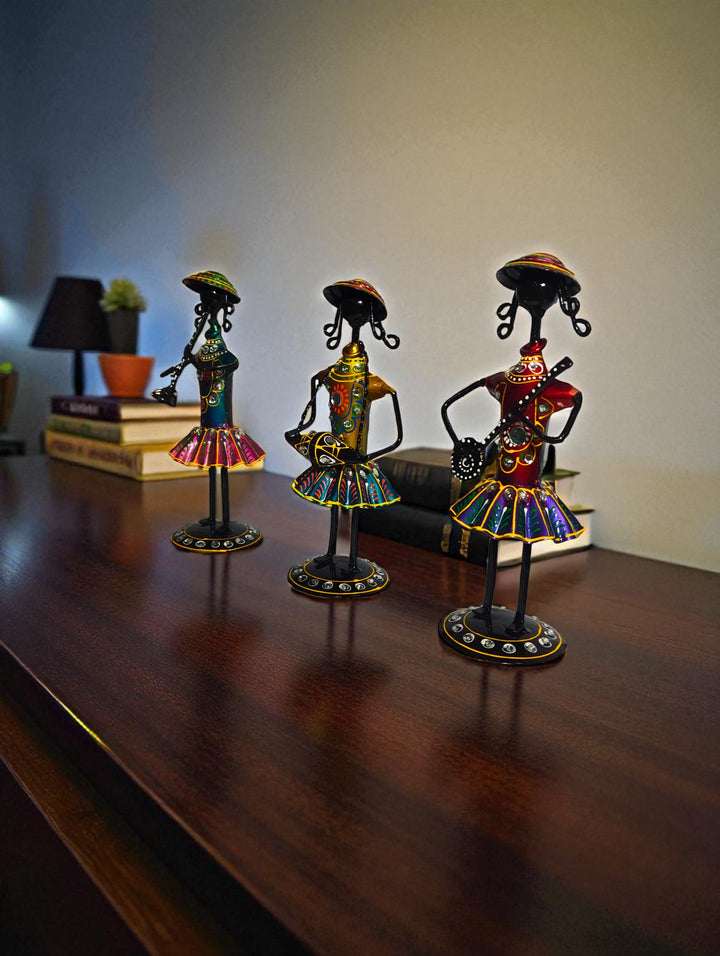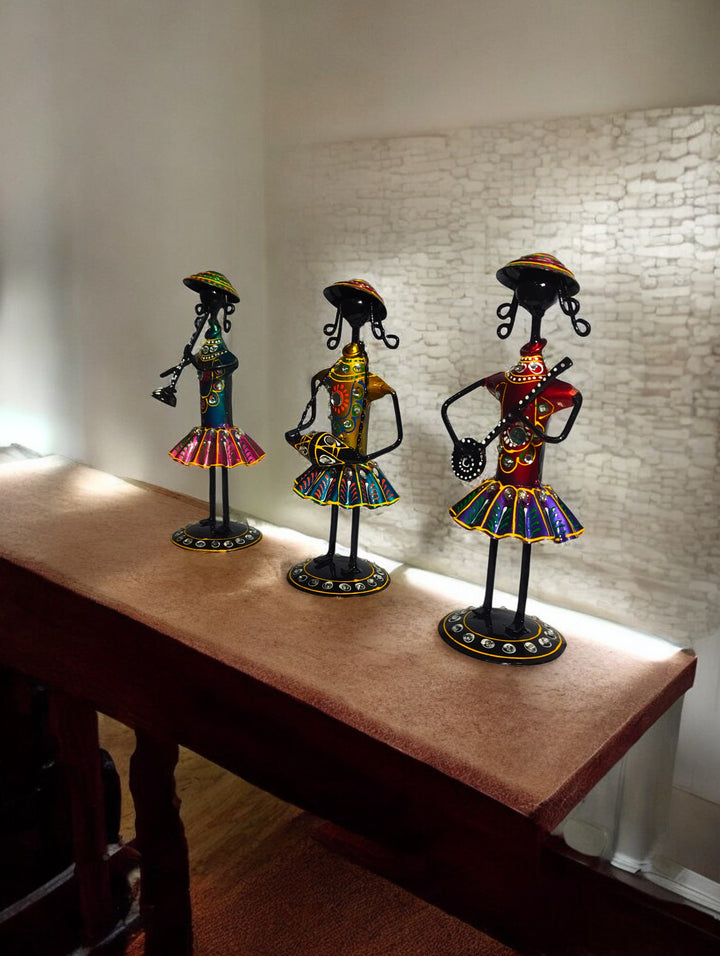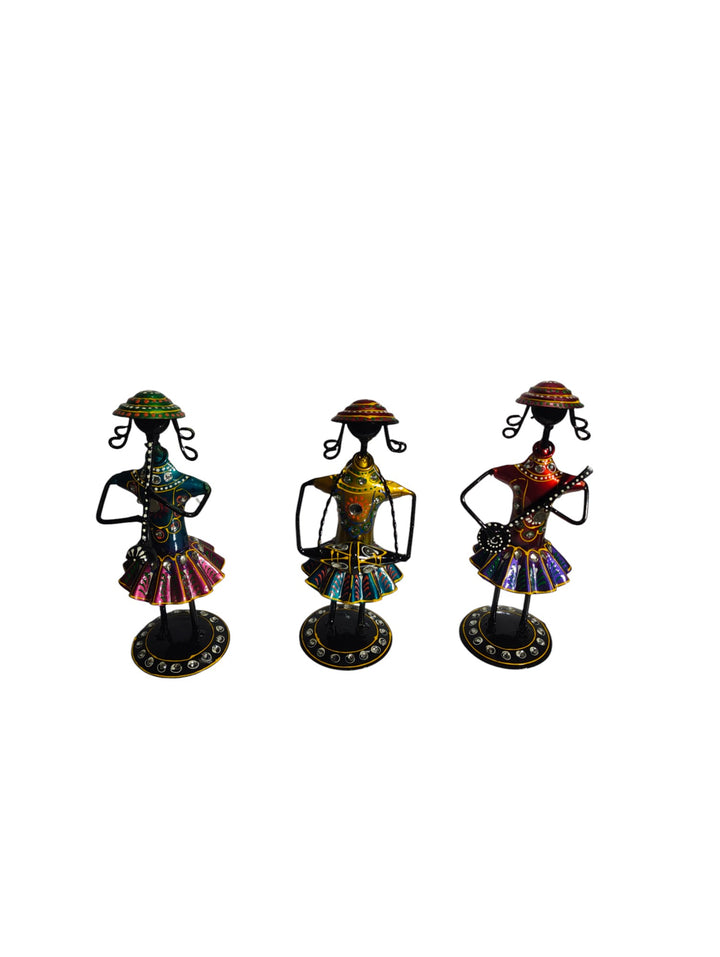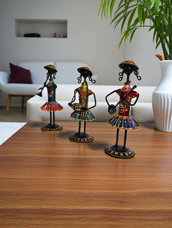 This beautiful set of metal musician dolls is a unique showpiece for your home or office. Each doll is meticulously handmade, showcasing the rich folk music and tradition of Rajasthan.