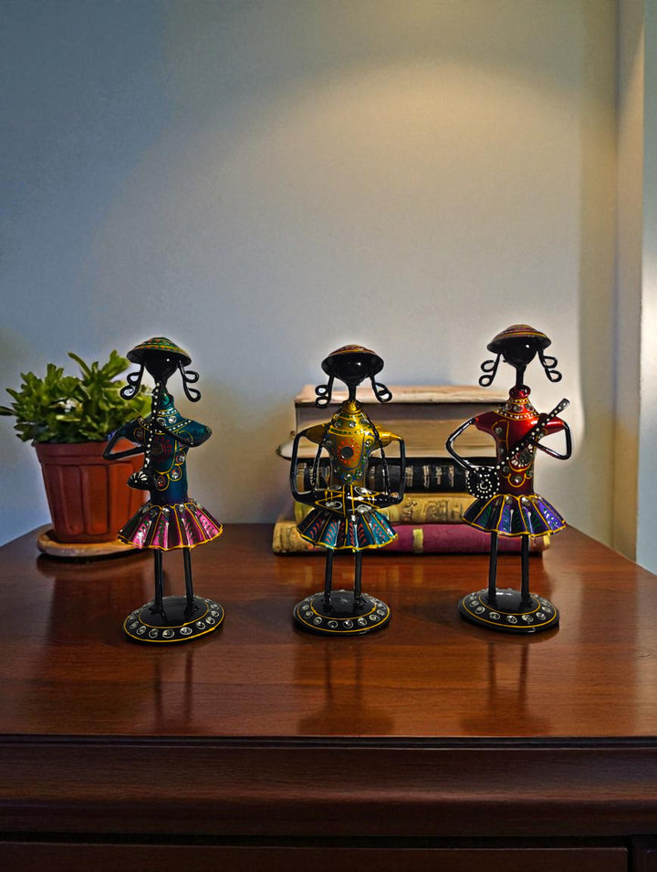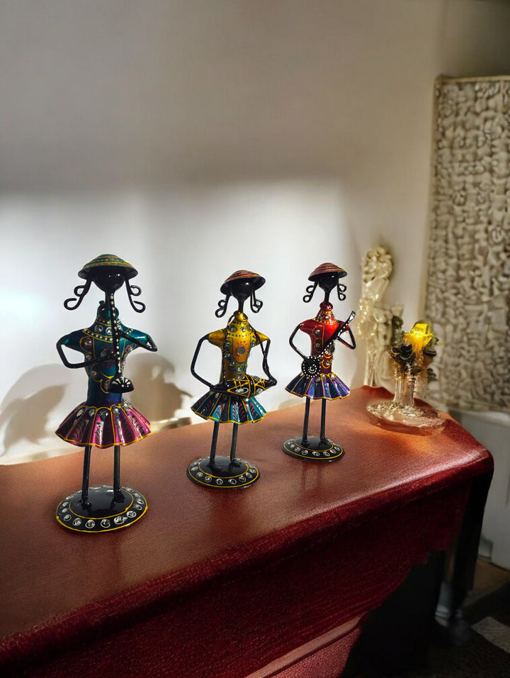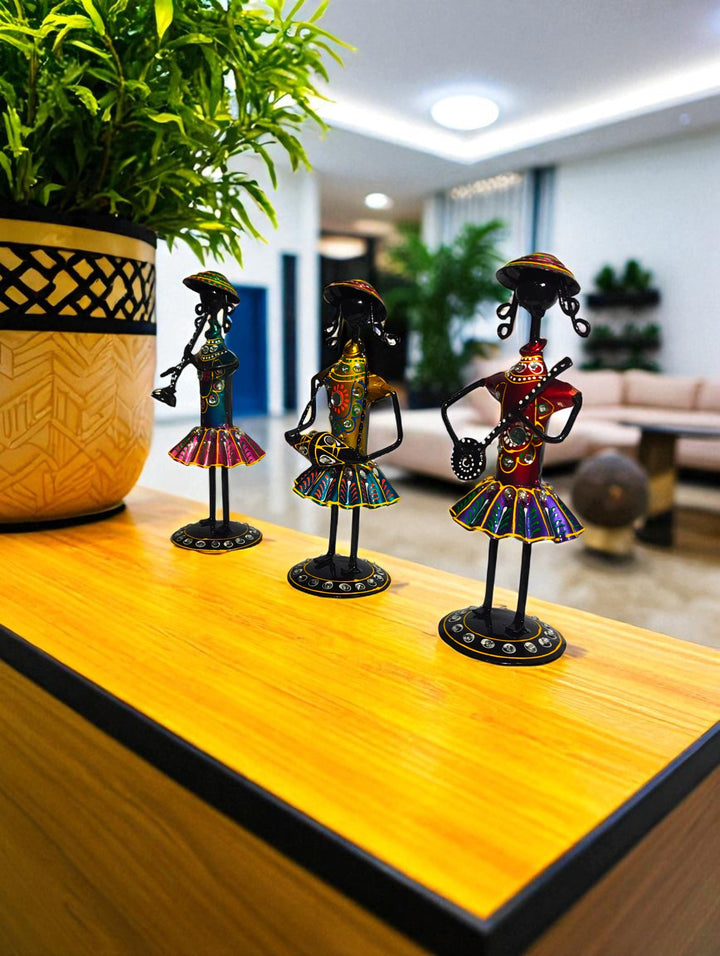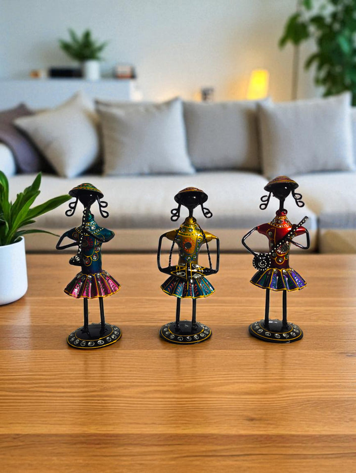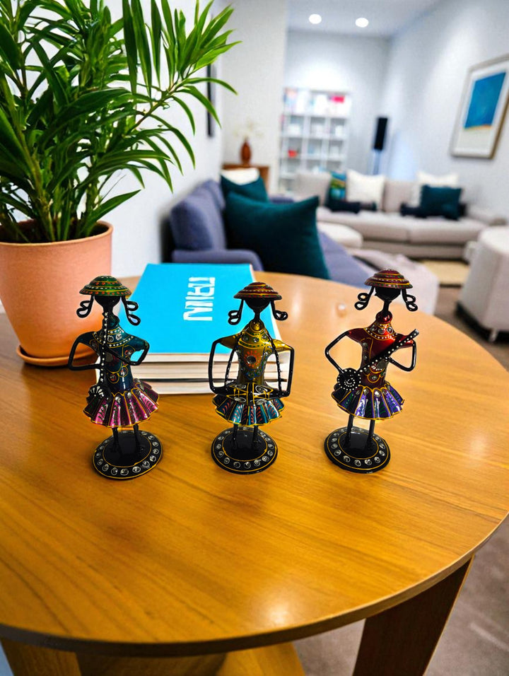This beautiful set of metal musician dolls is a unique showpiece for your home or office. Each doll is meticulously handmade, showcasing the rich folk music and tradition of Rajasthan.