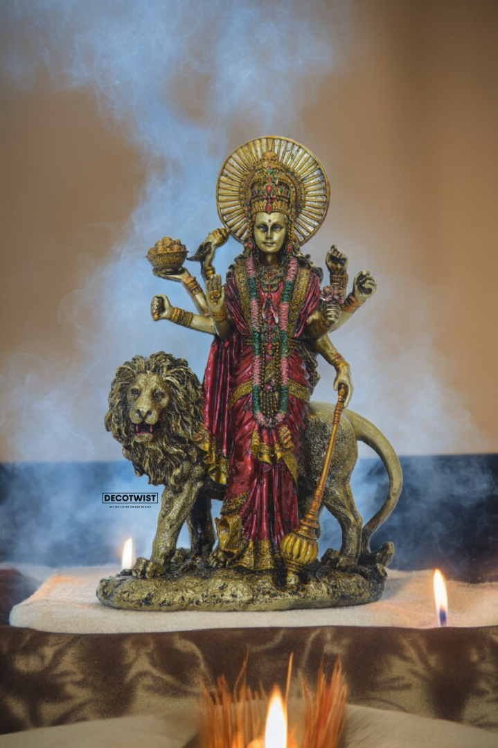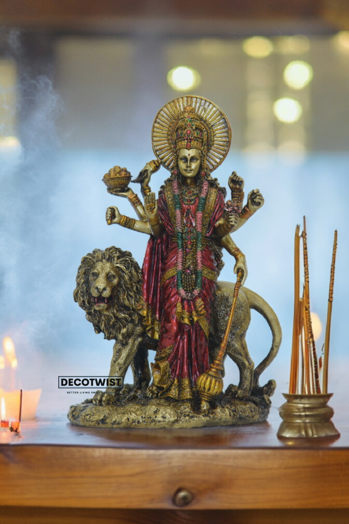 - Spiritual Centerpiece: Maa Durga with Lion Statue - Antique Durga Idol for Navratri and Durga Puja/Pooja.