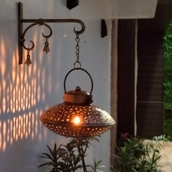 Made of mild steel, this gorgeous lantern can be used as a hanging fixture with a thin but durable handle.
