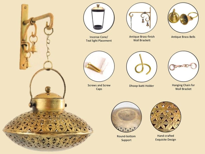 Degchi Pot : 600gm | Hanger : 350 gm | Brass Bells : 16gm each | Chain : 10gm | Total Weight : Approximately 1 kg